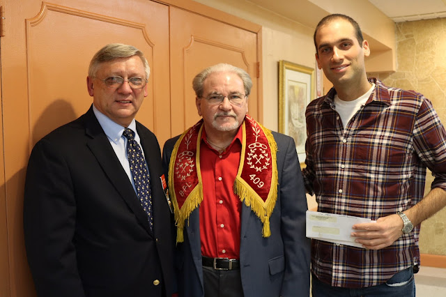 Brothers Dave Ajello and Aaron Kupferberg visited Borough Park Lodge #409. They were joined by acting Grand Secretary for the State of NY Tom Buchanan, brothers from Borough Park Lodge #409 and Mineola-Pacific Lodge #125 to give aid to Mr. David Ostrowski. This open meeting brought awareness to the plight of the 32-year-old Ostrowski who is suffering from kidney disease. He undergoes 8 hours of dialysis per night, among other treatments. Both #409 and #125 lodges contributed to his cause. See more photos here.